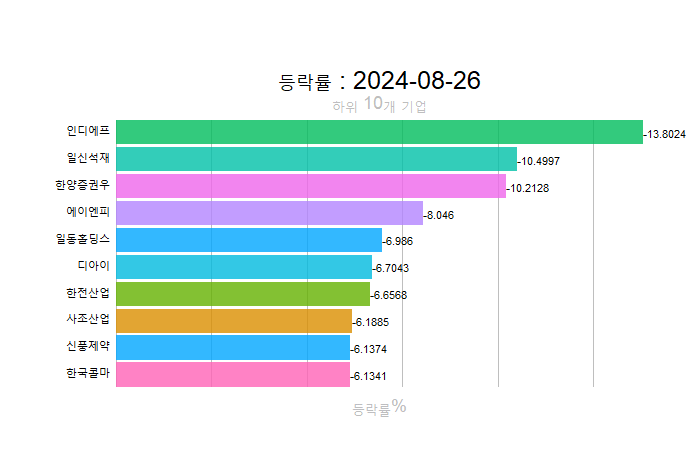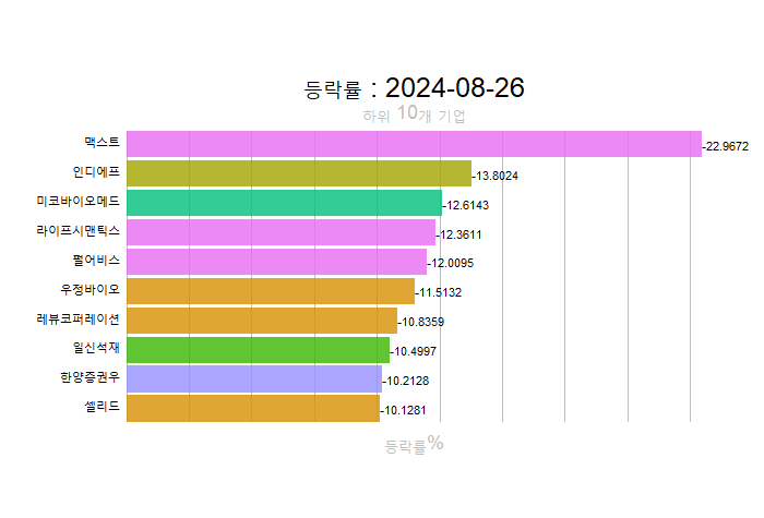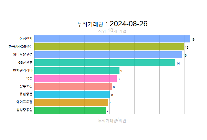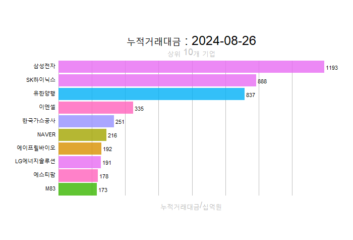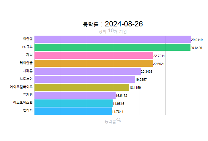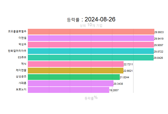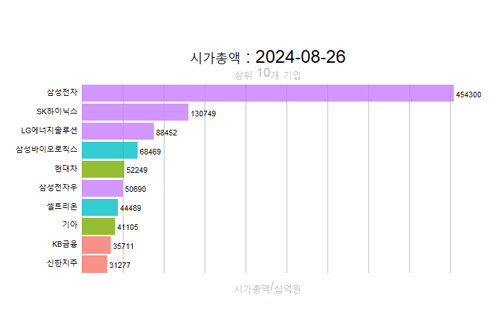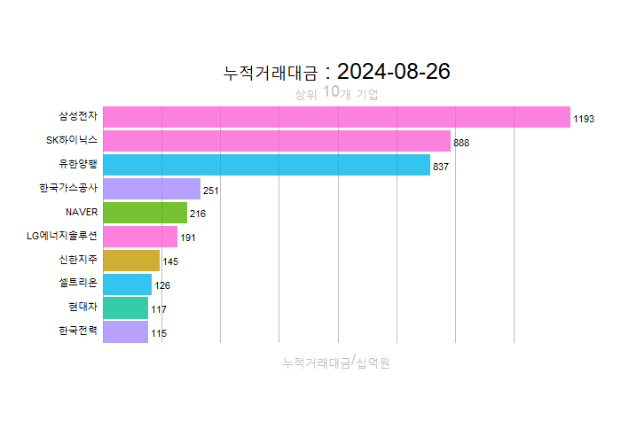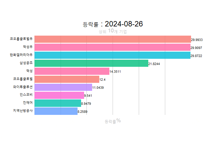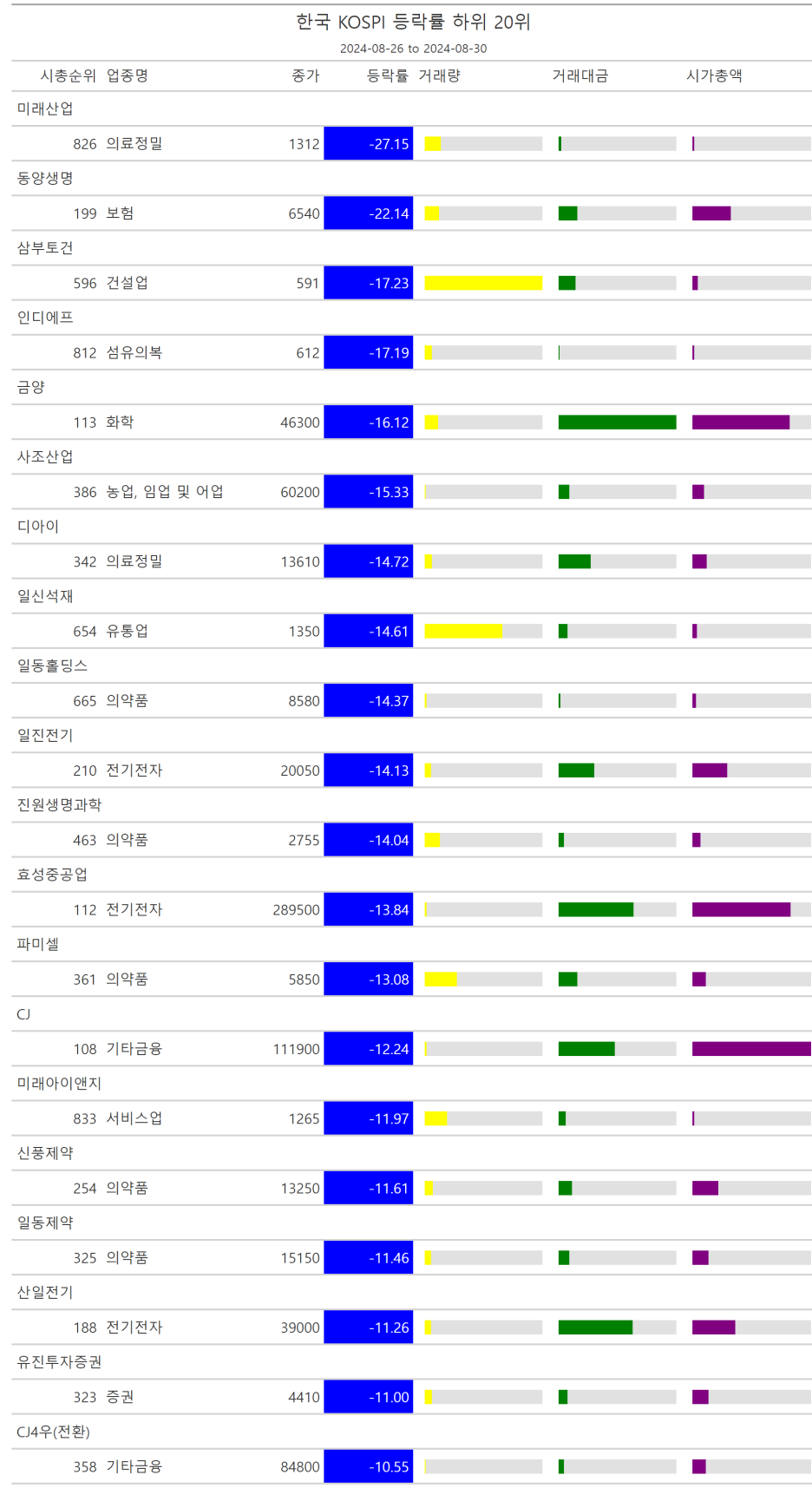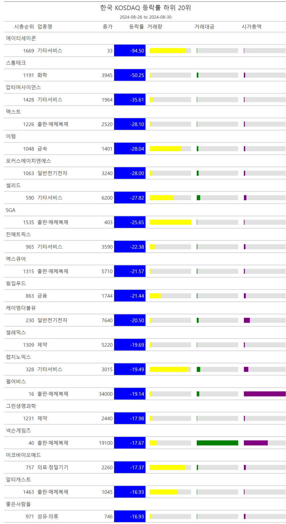 주간레이스, 2024년 8월 4주 한국(한국전체, 시가총액, 거래대금, 거래량, 등락률 상(하)위)