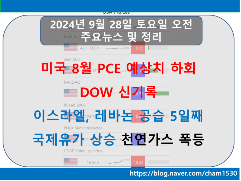 PCE 예상치 하회, DOW 신기록, 이스라엘 레바논 5일째 공습